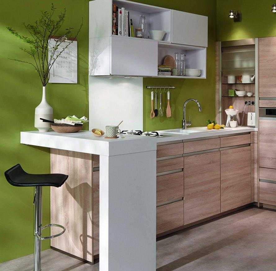 - Компактность и возможность размещения стола-острова, барной стойки.