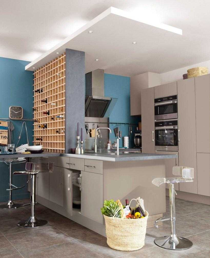 - Возводя перегородку между кухней и гостиной, подумайте об устройстве в ней ниш. Так вы обеспечите помещение ячейками для хранения сервиза, стекла, бакалеи, кулинарных книг, декора и прочих мелочей. Перегородку можно сделать как сквозной, так и односторонней.
