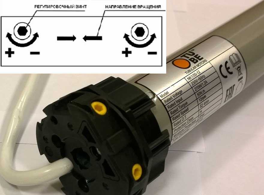 - С помощью шестигранного ключа происходит регулировка концевика рольставней – необходимо совершить 15-20 круговых движений в сторону знака «-». Это позволит полотну подняться до середины. Чтобы это произошло, нужно подключить первый и второй провод («фаза», «вверх»).