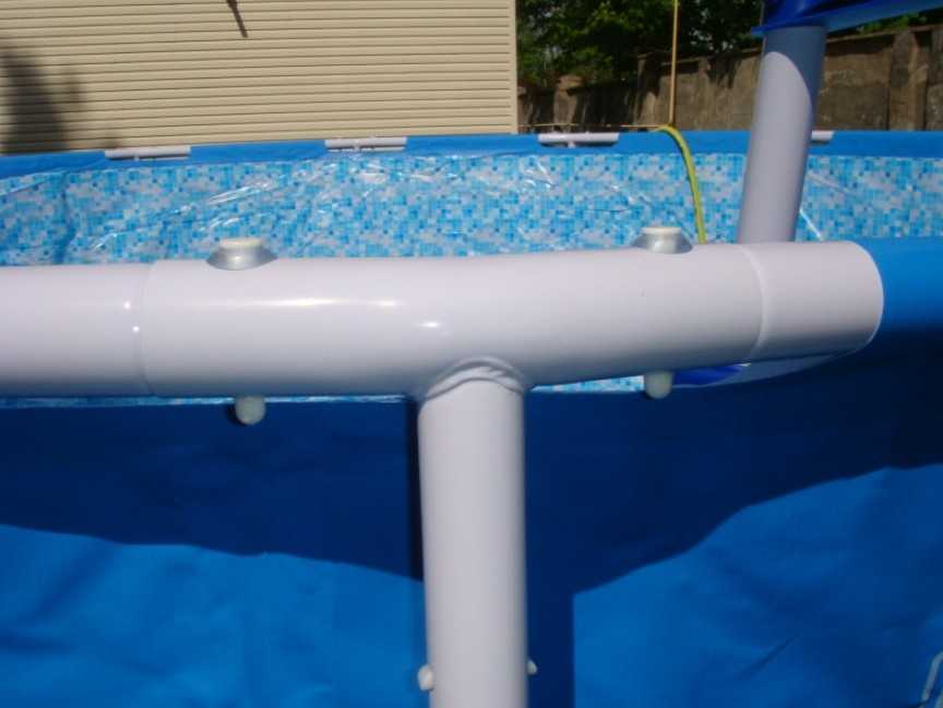 Для установки каркасных бассейнов достаточно двух человек. Весь процесс занимает от часа до двух. Производитель говорит, что инструменты не требуются, но некоторые соединения бывают очень жесткими, поэтому молоток не помешает.
