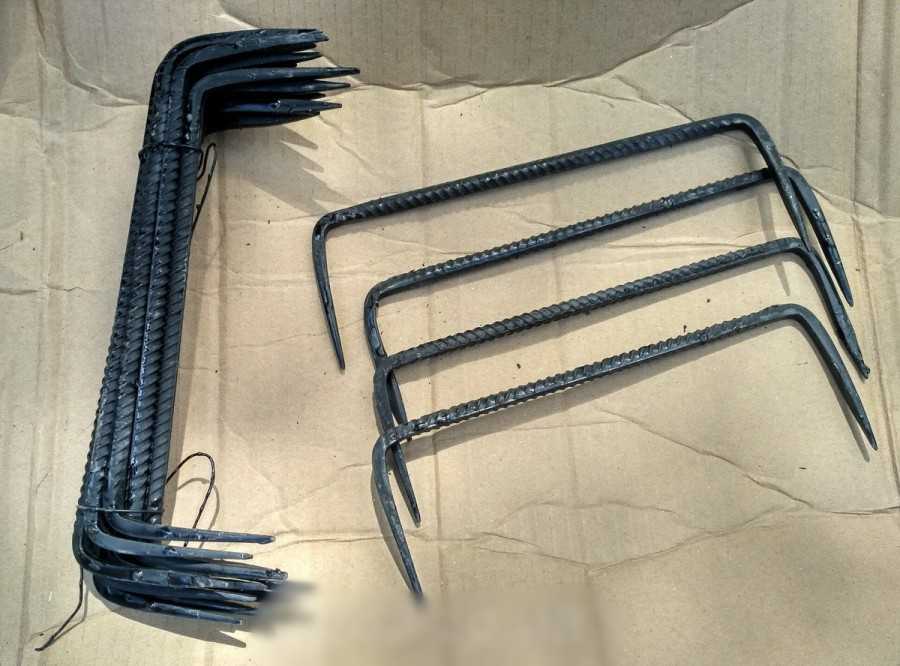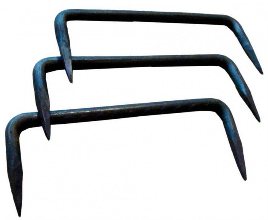 Кованые скобы изготавливаются на специальном производстве из прута диаметром до 16 мм, имеющего гладкий профиль. Производят выгибание, затачивают концы. Острые торцевые кромки в процессе забивания не позволяют материалу растрескаться.