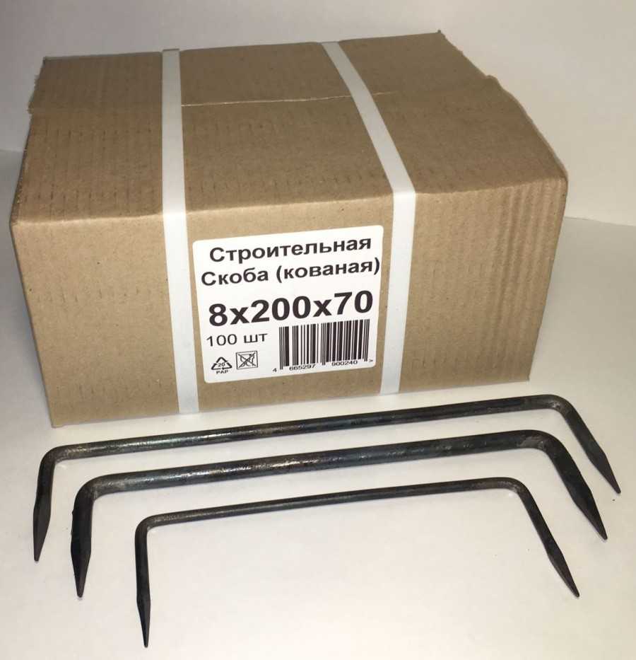 Скоба строительная, кованая, 8x300x70 мм, 100 штук