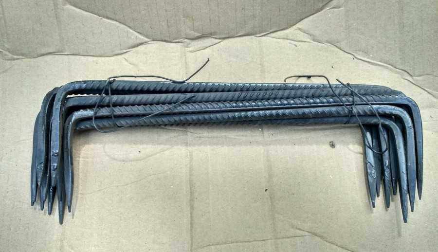 Первоначально для производства подобной продукции используется обычная арматура с гладким строением и сечением от 0,6 до 1,6 см. Впоследствии каждый из прутьев нарезается на отрезки, которые подвергают ковке и превращают в скобу.