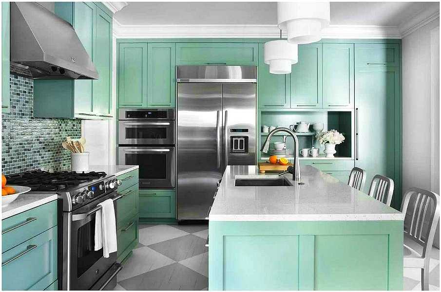 Мятная палитра красок все чаще встречается в интерьере кухни, и это совсем неудивительно