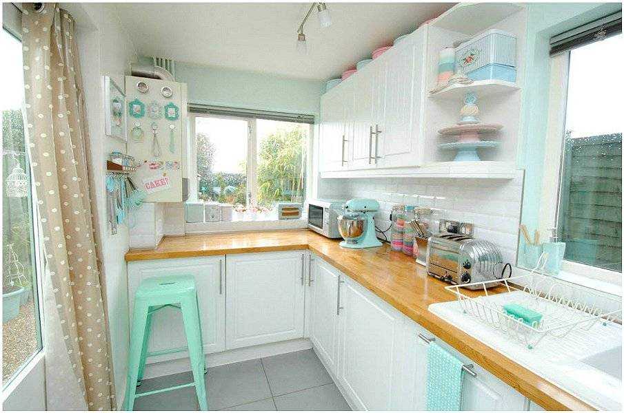 Нельзя не упомянуть и мелкие детали: чайник, тостер, миксер, посуда, цветочные горшки, шторы, скатерть, которые могут быть как мятного цвета, так и контрастного.