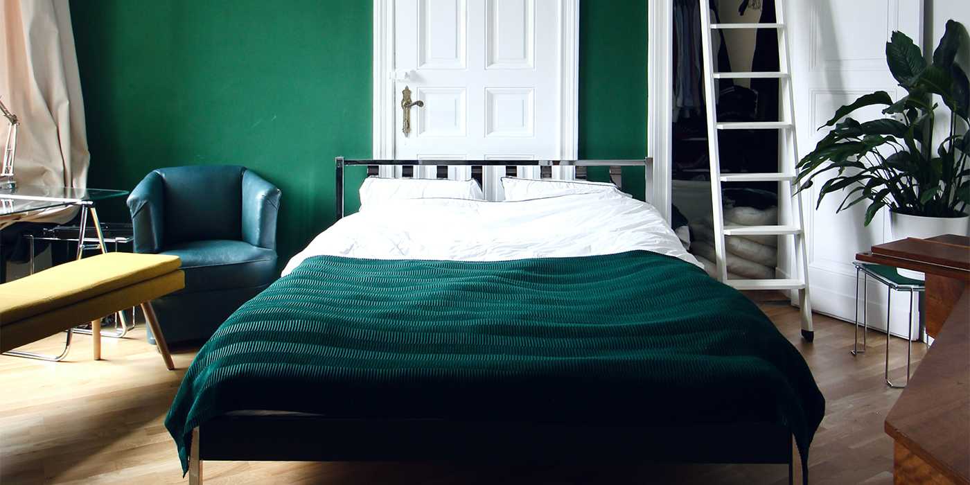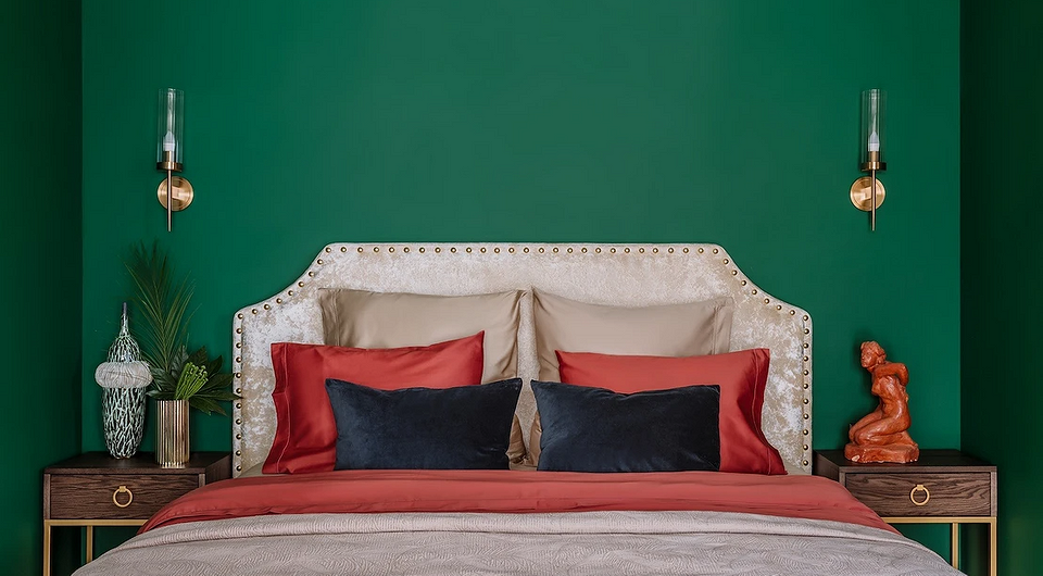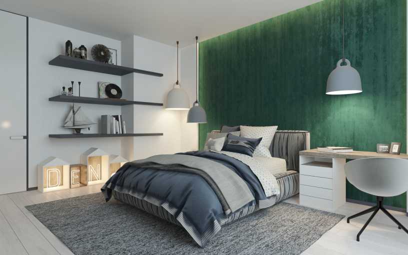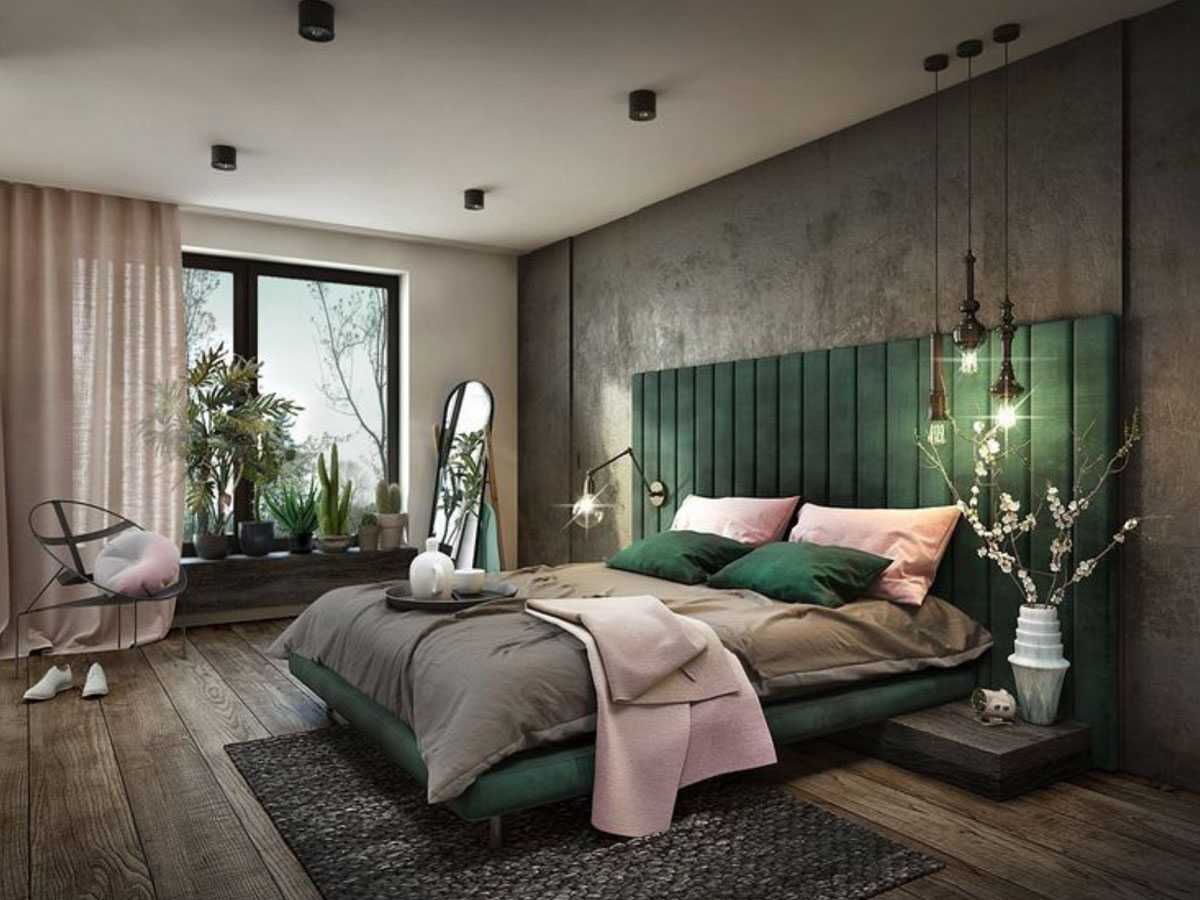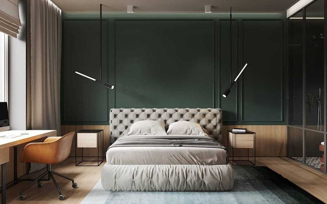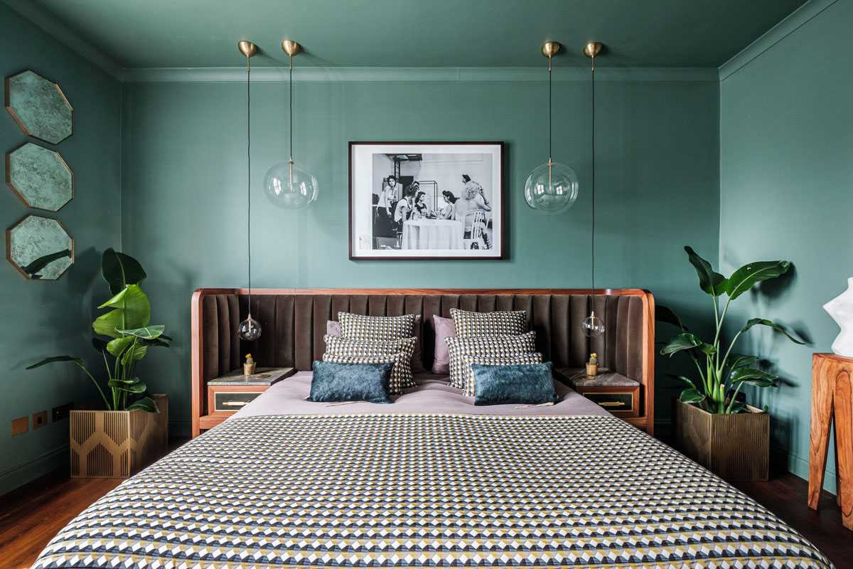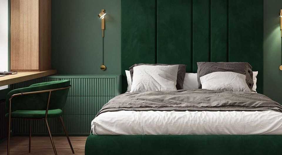 Зеленый цвет в интерьере спальни — 3 фото