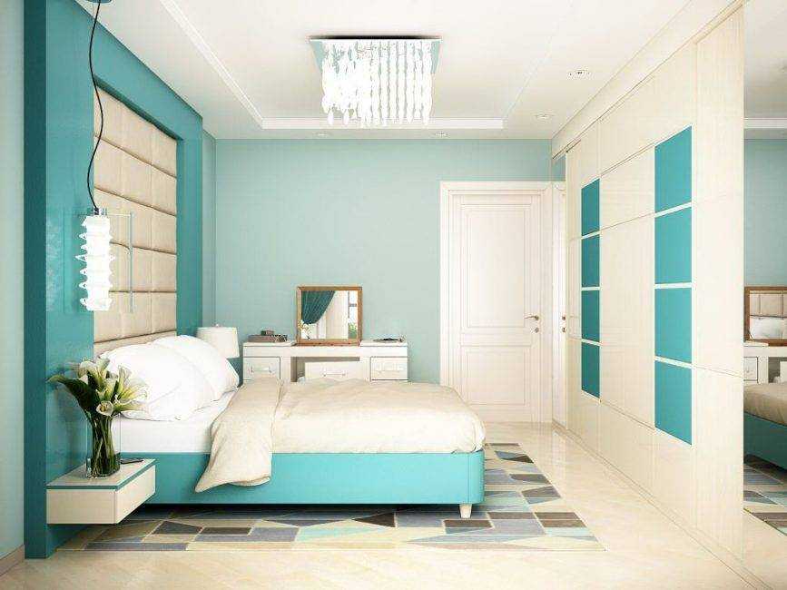 Этот оттенок способен «охладить» комнату, создав тем самым более благоприятную атмосферу для пробуждения. Классический интерьер подразумевает обои мятного цвета с узором, партеры в тон и стильный мебельный гарнитур. В спальне, относящейся к современному стилю, зачастую можно увидеть стены, окрашенные мятной краской и роскошную белую мебель.