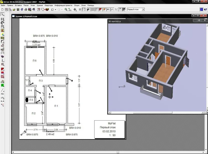 - Возможность одновременной работы с двухмерной и трехмерной моделью помещения;