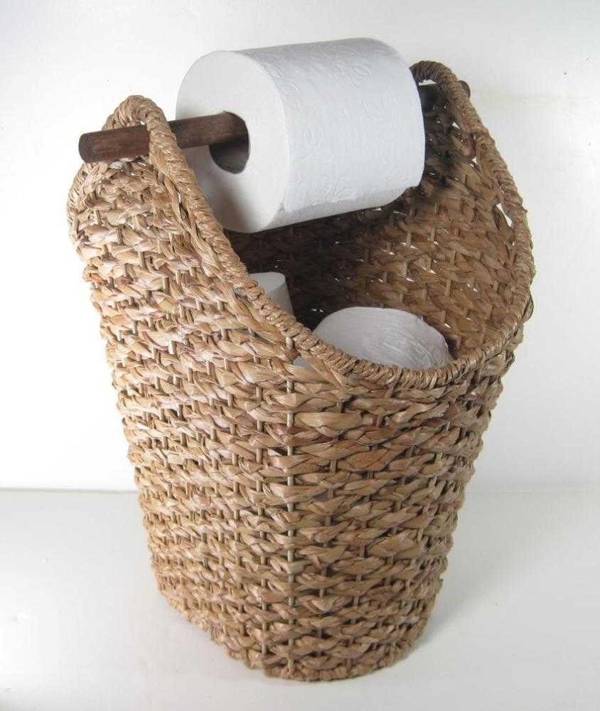 Держатель для туалетной бумаги можно сделать так, чтобы он был похож на корзину.