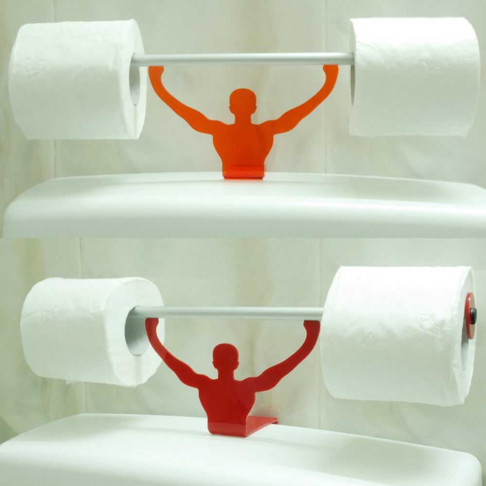 Своими руками можно создать и пикантный вариант, который понравится и владельцам, и гостям. Наиболее оригинальный и славный пример – держатель в виде силача, который способен держать два рулона вместо одного. Мужчинам такая модель придется по вкусу особенно.
