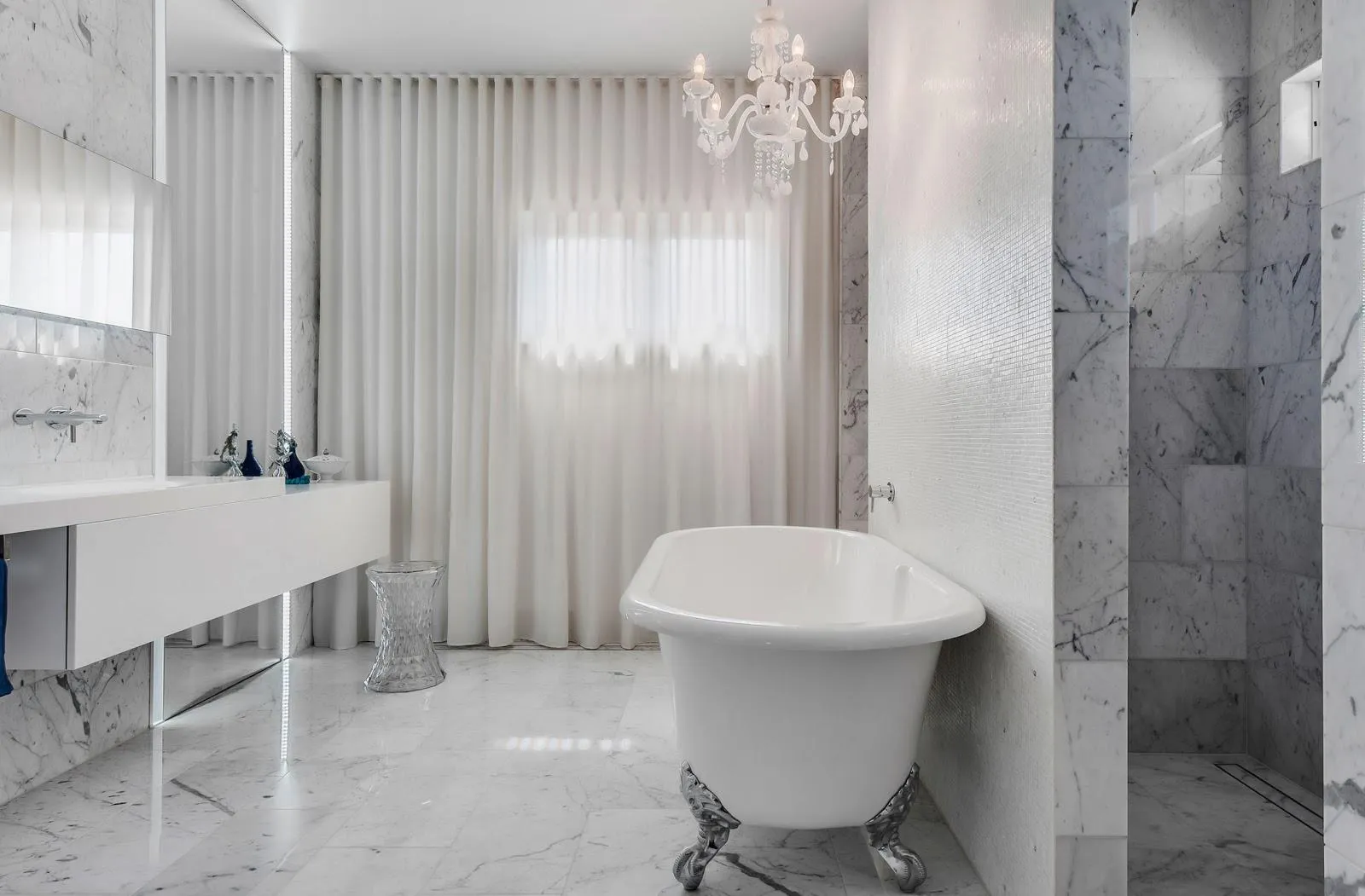 Важно учитывать состав семьи, образ жизни владельцев просторной ванной комнаты. Современным решением для любителей комфорта является разворот ванны в центральной части