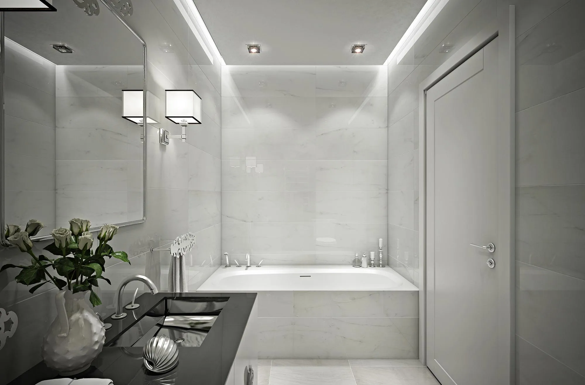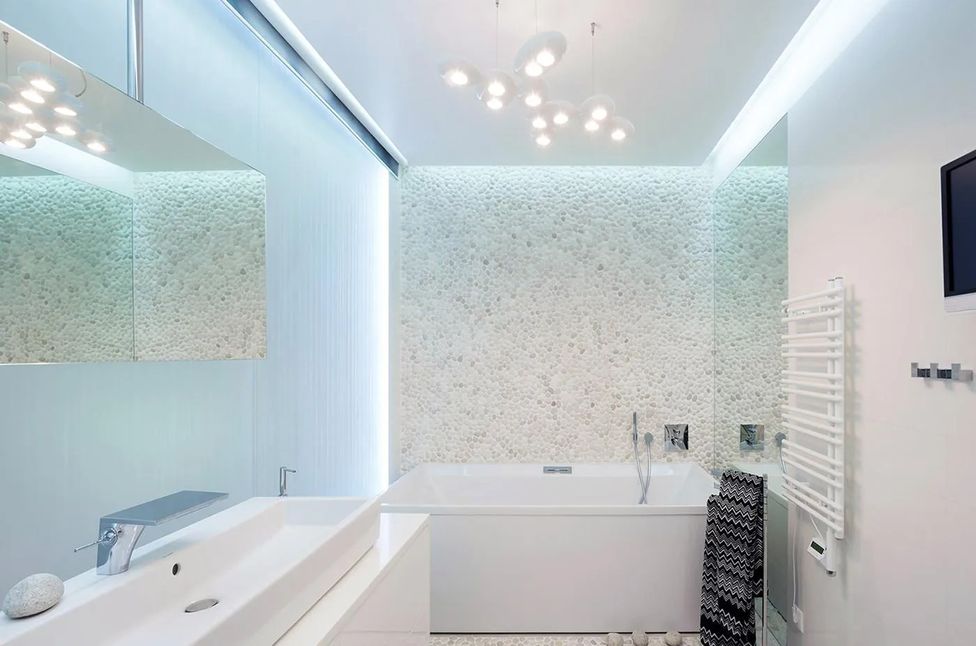 Дизайн ванны 2019-2020 годов иметь несколько источников света. В основном это точечная и светодиодная подсветка. Она позволяет добавить частичку легкости в ванную комнату.